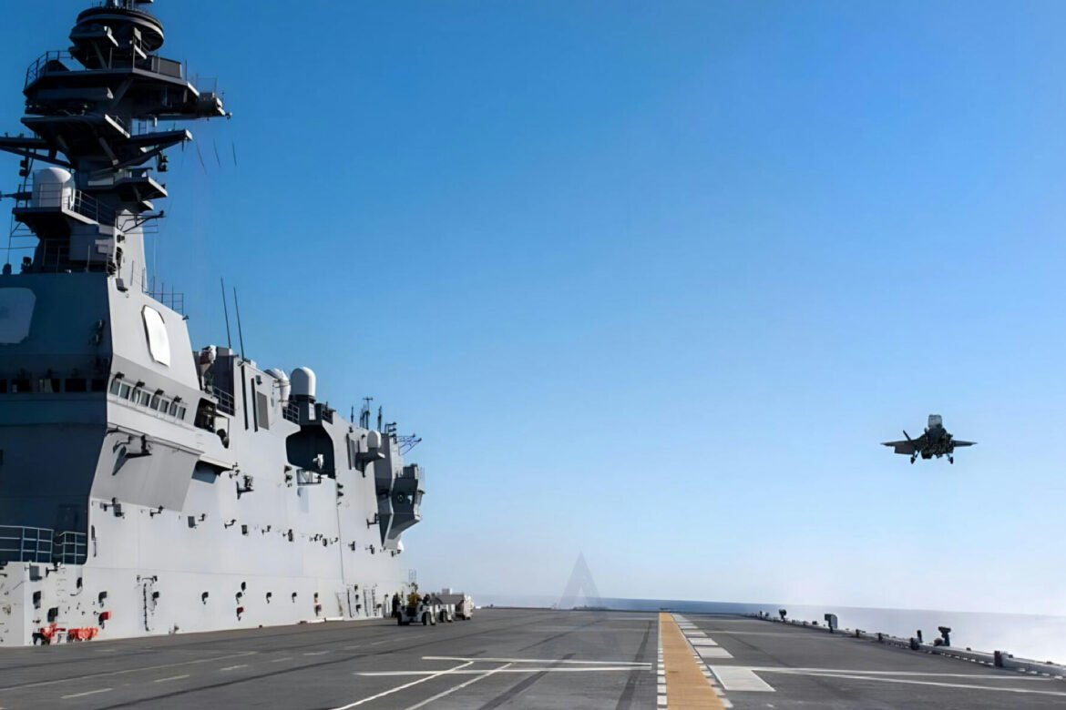 The landing took place on the JMSDF’s helicopter carrier, the JS Izumo, one of Japan’s largest warships, which has been recently modified to operate F-35B fighter jets. The Izumo is a key part of Japan’s naval fleet, designed to enhance the country’s capabilities in air defense and maritime security. The F-35B variant, with its ability to take off and land vertically, is well-suited for operations aboard ships like the Izumo, which can accommodate these advanced stealth fighters.